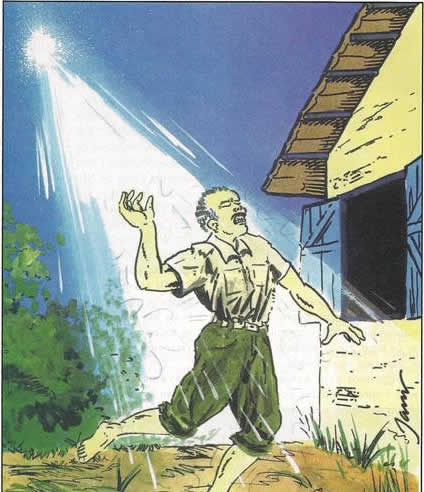 Uma luz intensa, descrita como uma "tocha de fogo", invadiu o ambiente e atingiu diretamente seu corpo.